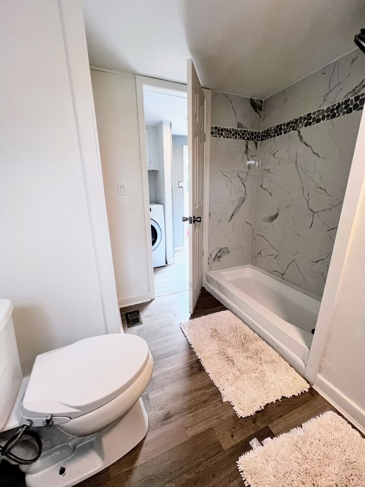 Inside, you’ll find new vinyl flooring, a contemporary kitchen with stainless steel appliances, an in-unit washer and dryer, and a beautifully updated bathroom featuring a walk-in tiled shower, modern vanity, and 2-in-1 bidet. The exterior has been refreshed with new siding and a freshly painted storage shed, providing both curb appeal and functional storage space.